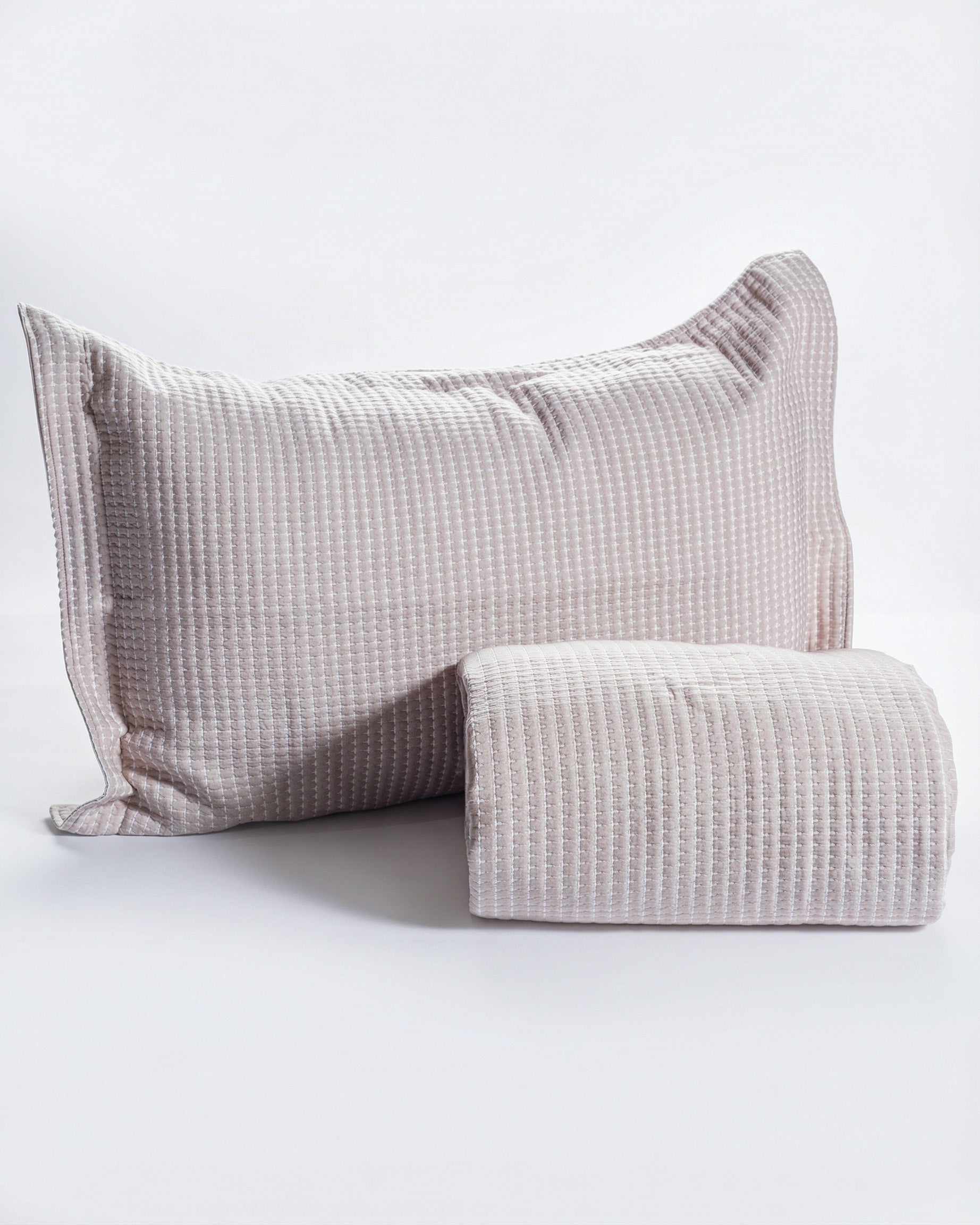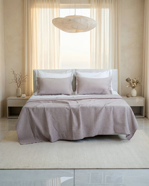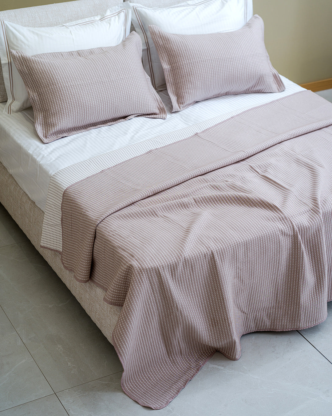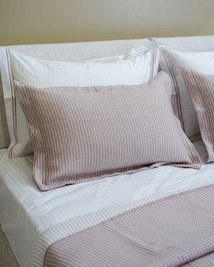 Seti Nina 100% Pambuk. Butësi dhe rehati, i jep krevatit një pamje të kuruar që fton në pushim të thellë. Dizajni i rregullt dhe nuancat harmonike e transformojnë dhomën në një ambient të ngrohtë dhe elegant.